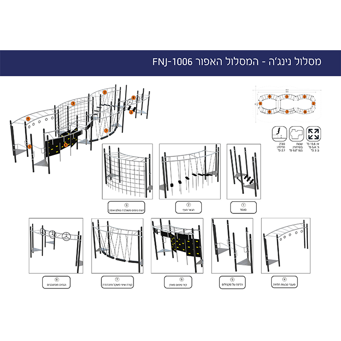 מסלול נינג׳ה המיועד לילדים בוגרים ונוער. מסלול אתגרי היקפי המכיל אלמנטים של טיפוס, שיווי משקל, הליכת ידיים באוויר. משלב טכניקות של מהירות, כוח, זריזות, ויציבות.