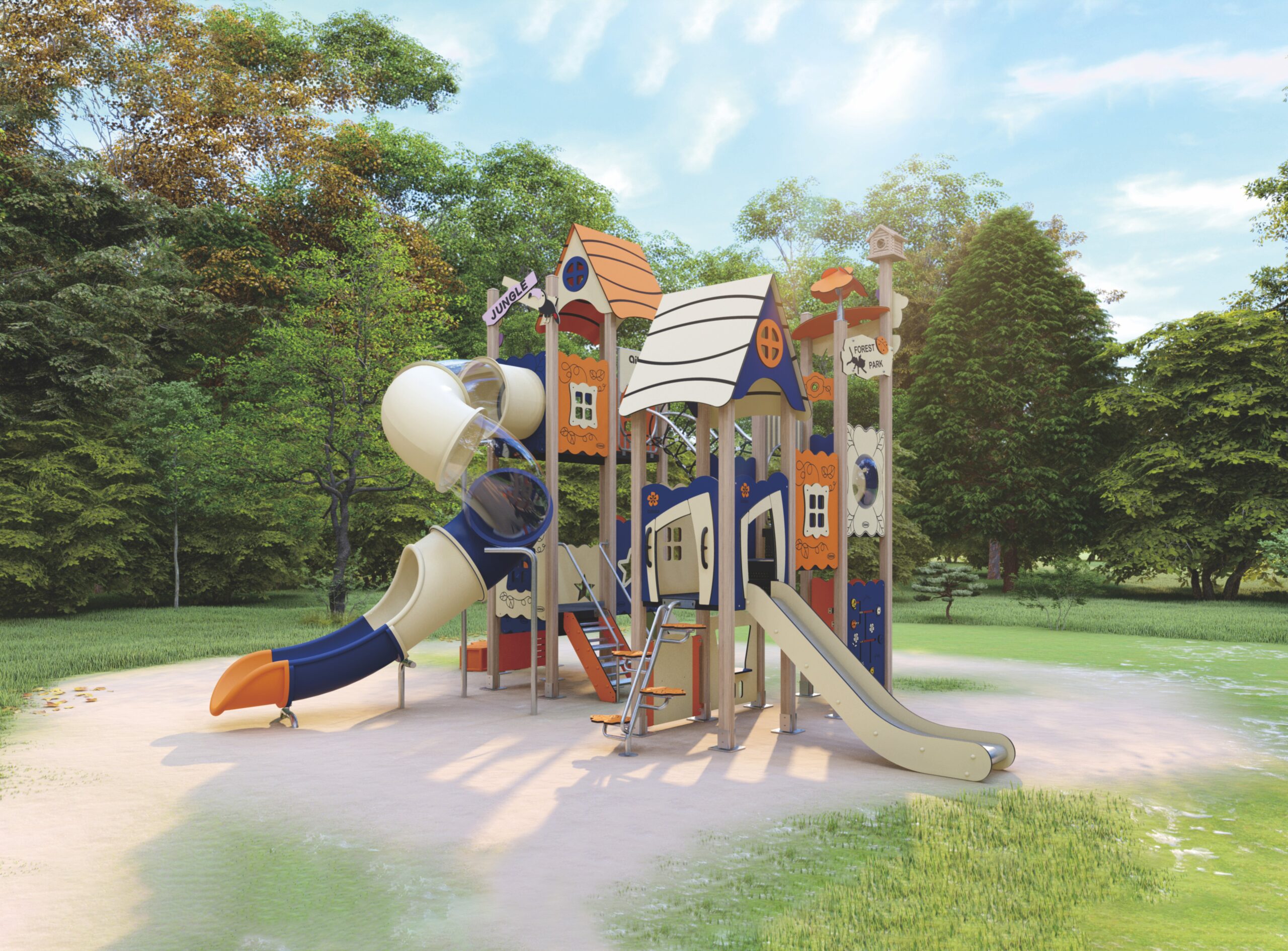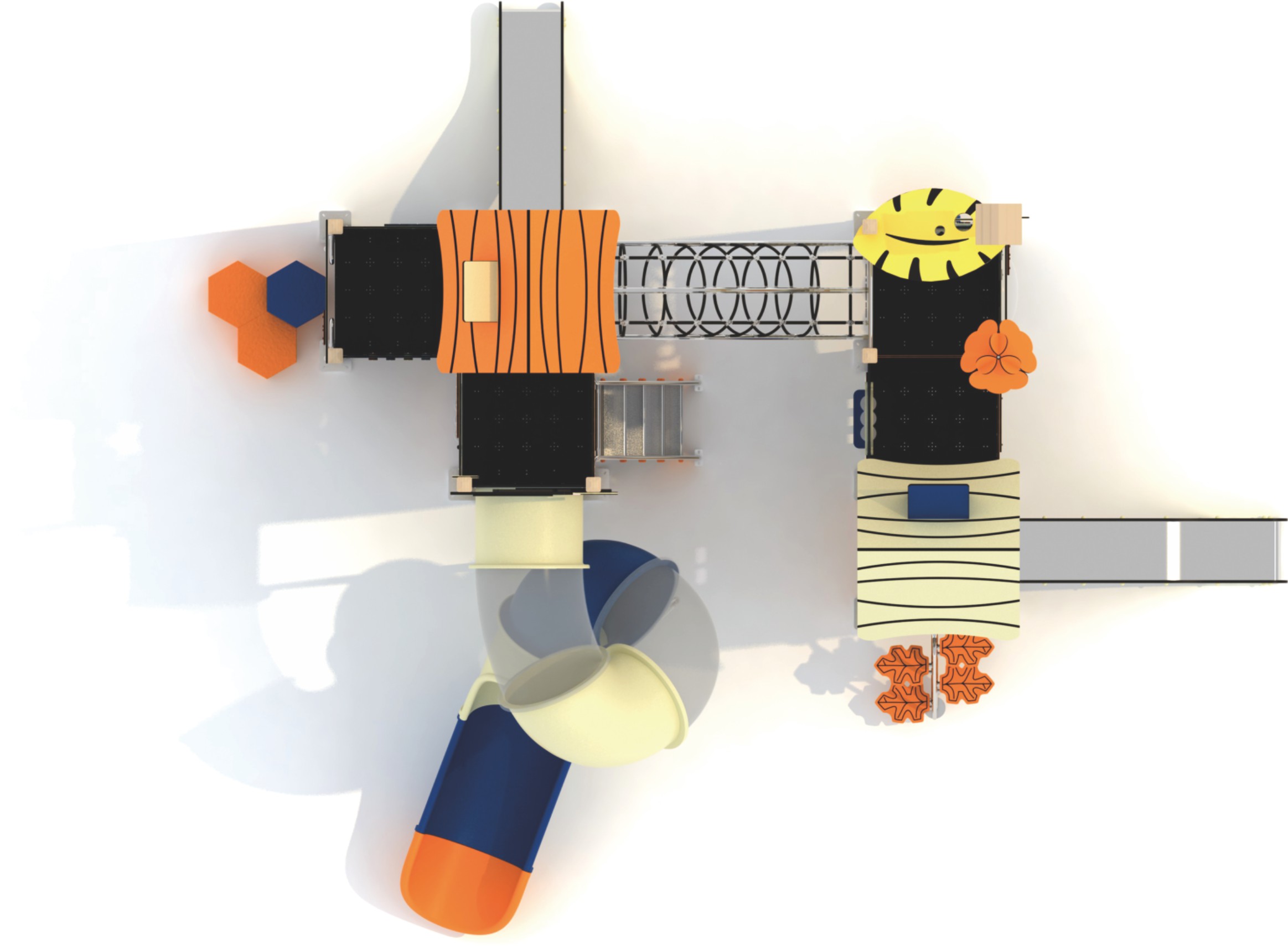 מתקן משולב גדול הכולל מגלשות, פאנלי משחק סולמות ומנהרה
