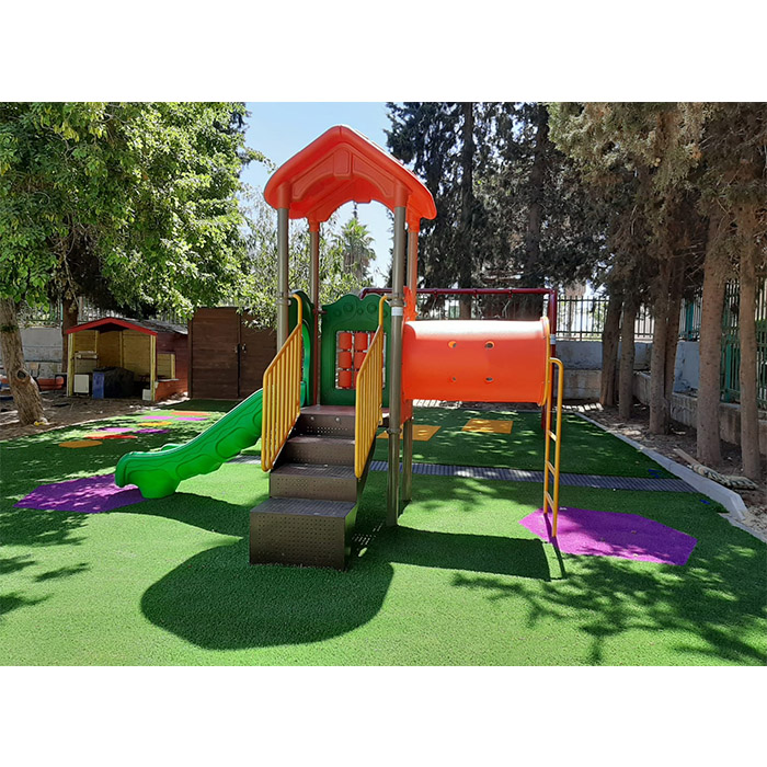 מתקן משולב בעל מנהרה ומגלשה מגובה 0.90 מ'.