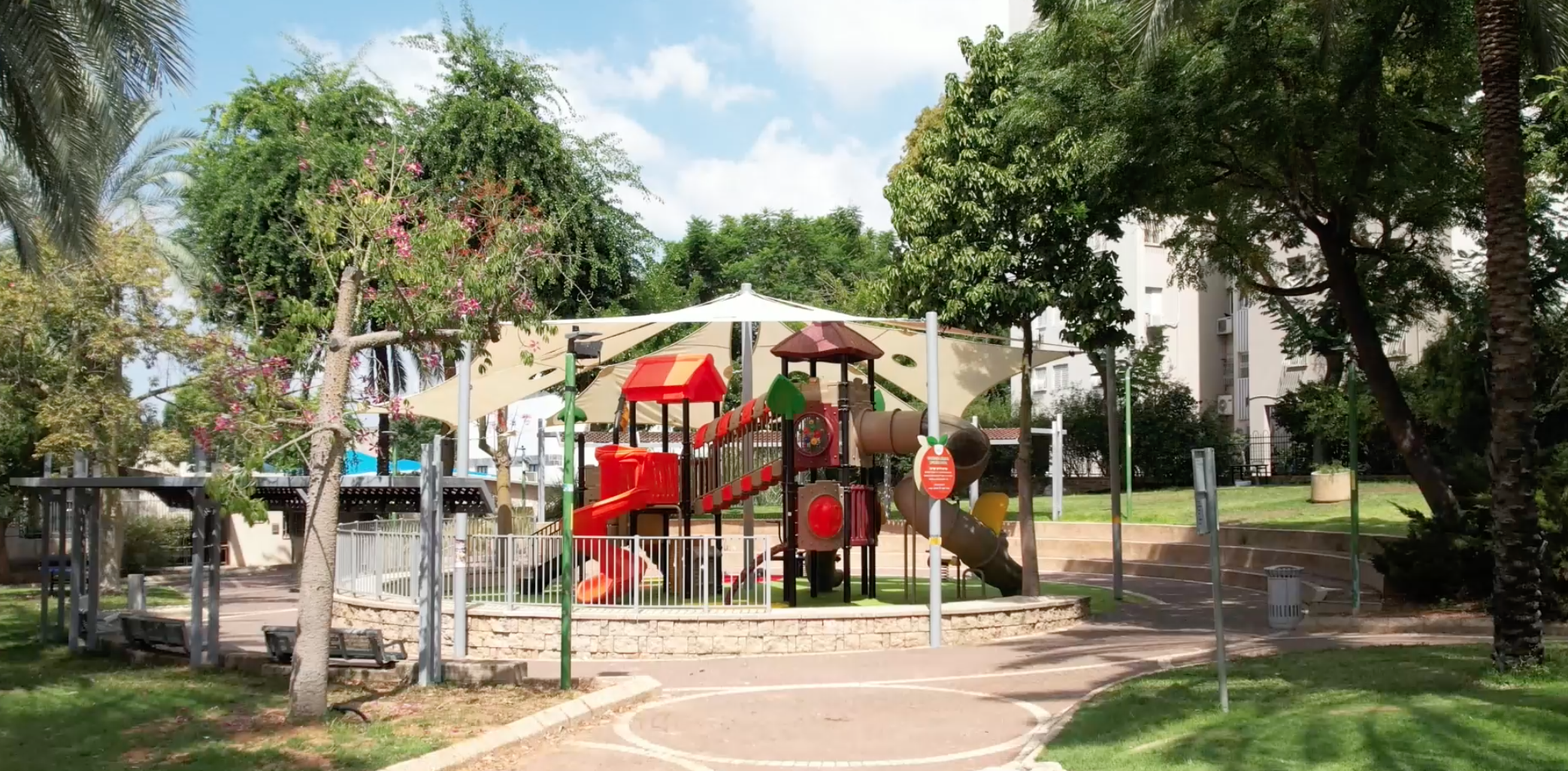 מגרש משחקים חדש וצבעוני עם מגוון מתקנים לכל גיל